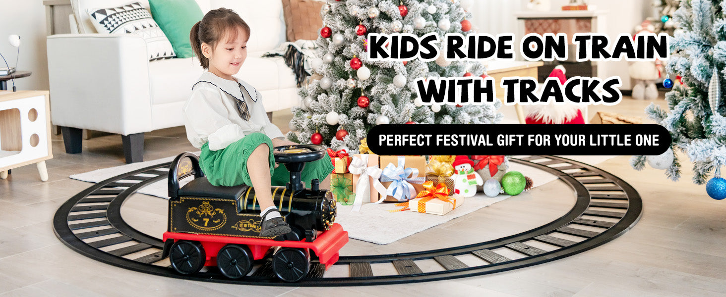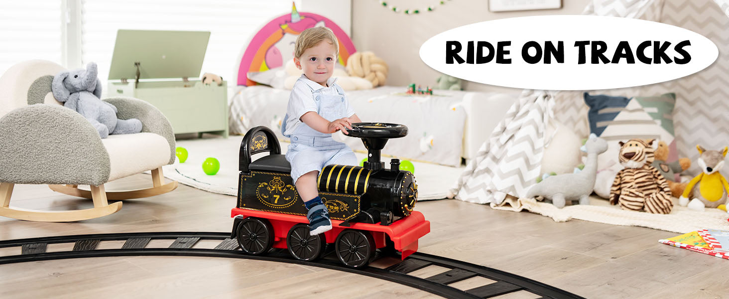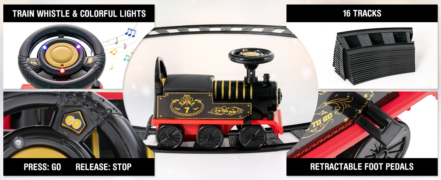 Electric Ride on Train with Tracks, Storage Seat, Flashing Lights & Music, Backrest, Anti-tilt Device, Gift for Toddler Boys & Girls.